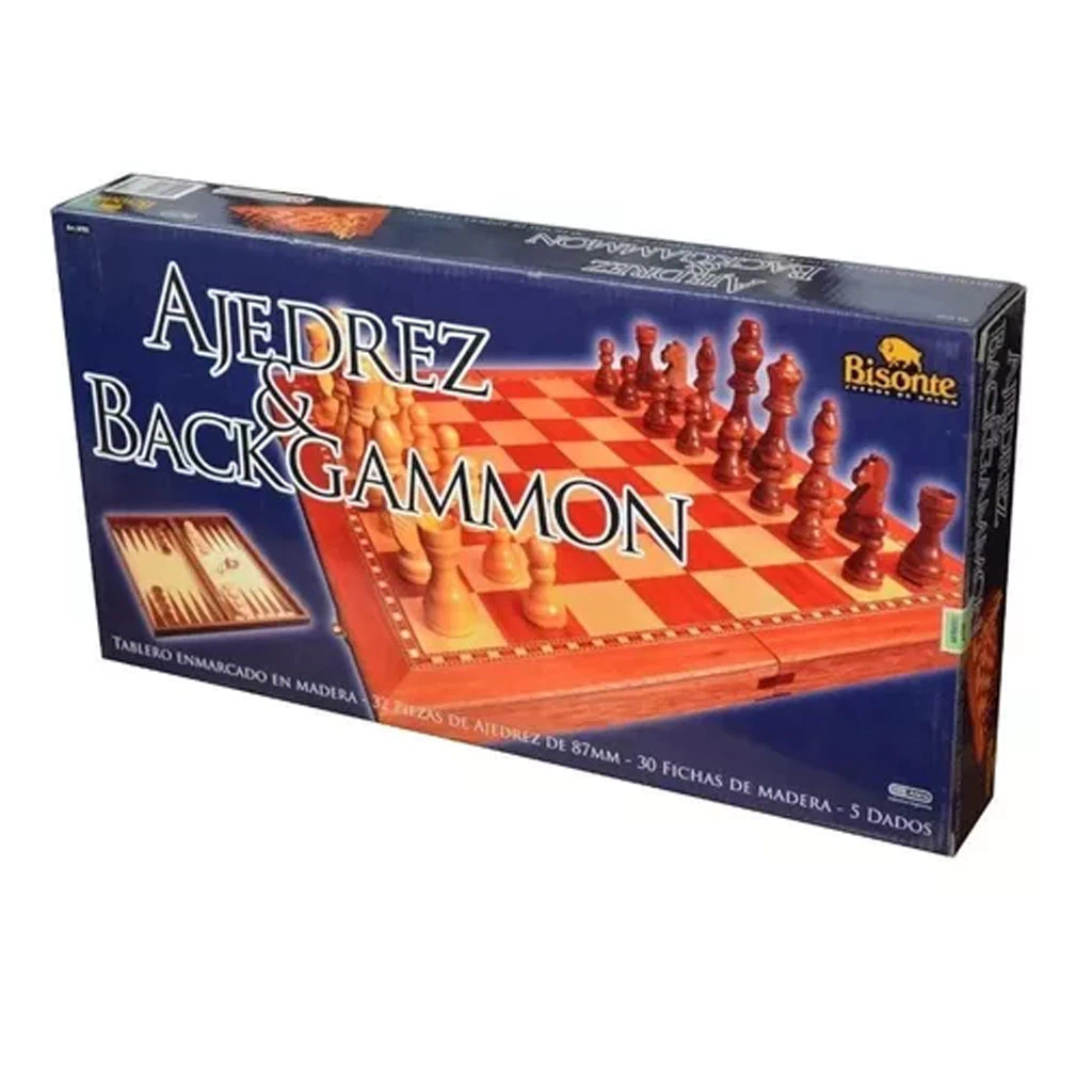 Ajedrez Y Backgammon Juego Madera Plegable 2en1 Fichas 87mm