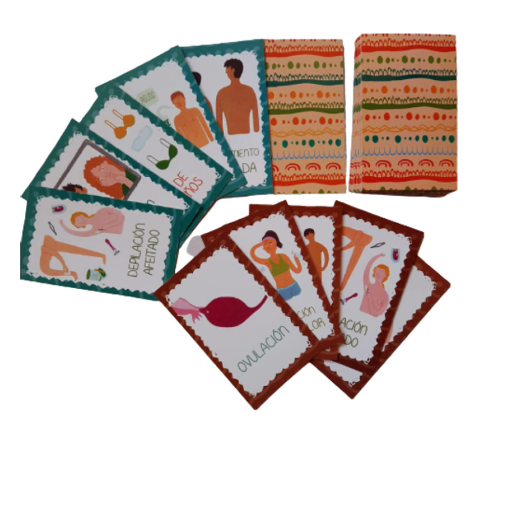 Descripción: mazo de 60 cartas con tres palos diferenciados por colores. Cada palo consta de 20 ilustraciones que retratan los cambios que ocurren durante la pubertad. Un reglamento y una carta explicativa. Caja acrílica que le da mayor durabilidad. Guía de información y actividades sugeridas para descargar.