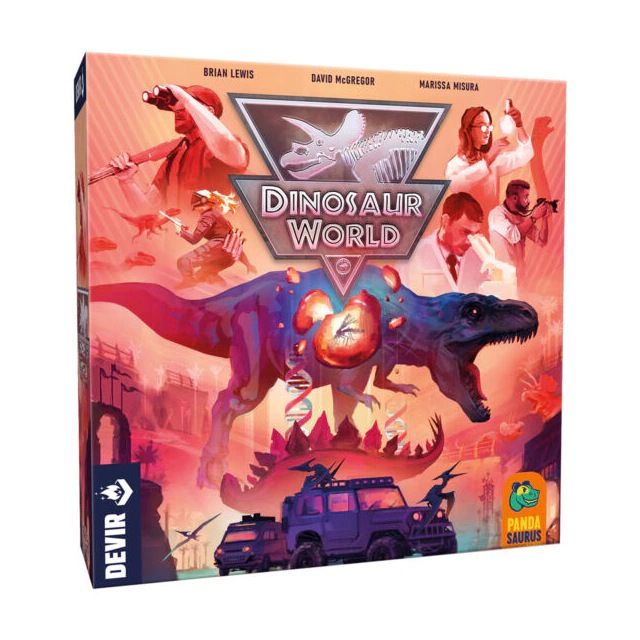 Dinosaur World está diseñado por Brain Lewis, co-creador del juego original Dinosaur Planet y su expansión, Totally Liquid. También han participado en la creación del juego Marissa Misura y David McGregor, co-diseñadores del dungeon crawler Fungeon Party. Se trata de un eurogame de entre 60-120 minutos de duración para hasta 4 jugadores. Ha sido publicado originalmente, igual que su precuela, por la editorial Pandasaurus Games. El arte corre a cargo de Kwanchai Moriya, Joe Shawcross y Andrew Thompson, viejos conocidos del mundo lúdico.