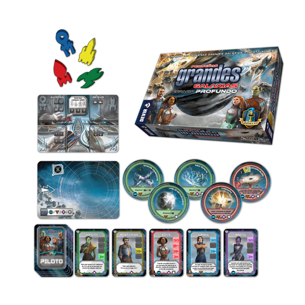 Espacio Profundo es una expansión de Pequeñas Grandes Galaxias y requiere el juego base. Diseñado por Scott Almes e ilustrado por Naomi Robinson, esta expansión puede disfrutarse en solitario o en grupos de hasta 5 jugadores, a partir de los 14 años, con partidas de aproximadamente 30 minutos. La expansión amplía el universo de Pequeñas Grandes Galaxias con nuevas mecánicas y componentes. Los jugadores tienen más opciones para ganar puntos de victoria, contratando pilotos con habilidades únicas y reuniendo insignias de exploración mientras investigan el cosmos inexplorado.