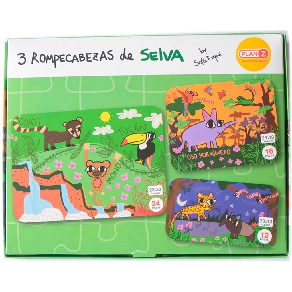 Rompecabezas infantil SELVA, 3 EN 1, son 3 rompecabezas de 24, 16 y 12 piezas