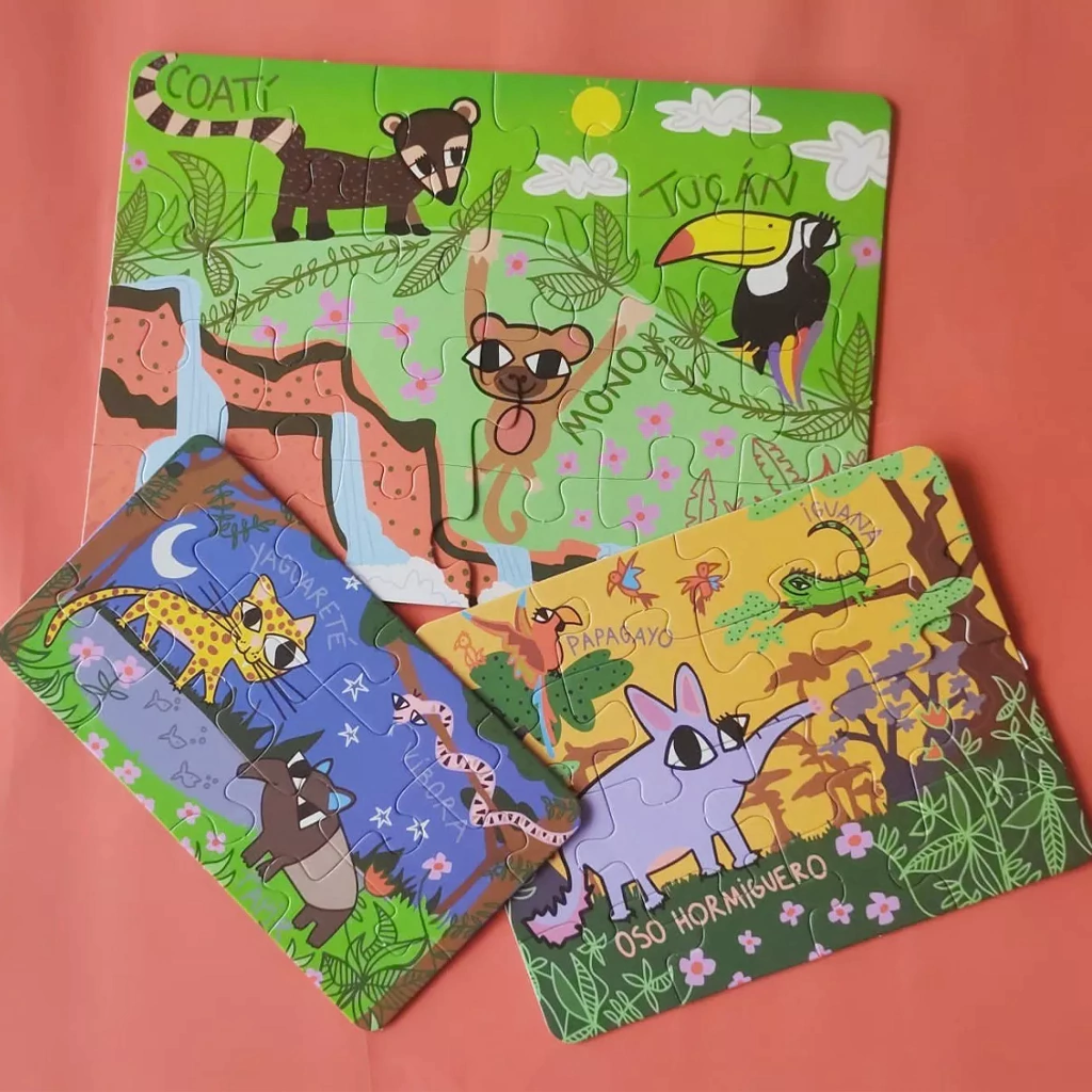 ¡Las tardes de lluvia van a ser las mejores! Este set de rompecabezas de 24, 16 y 12 piezas es ideal para niños a partir de 3 años, ofreciendo una experiencia divertida y educativa que fomenta la concentración y la coordinación. Es perfecto para que los pequeños se sumerjan en la temática de selva mientras desarrollan habilidades cognitivas.