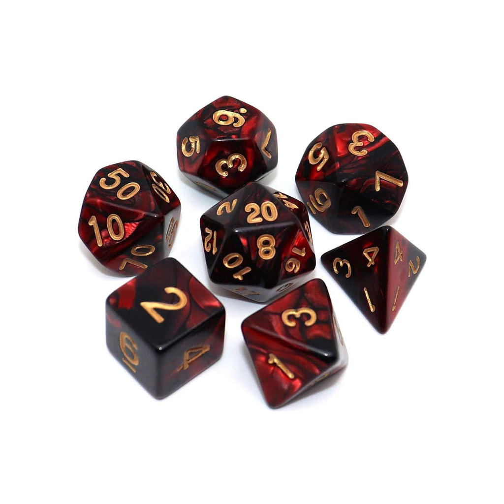 El set está compuesto por 7 dados necesarios para un jugador para partidas de Dungeons & Dragons y otros juegos de Rol.