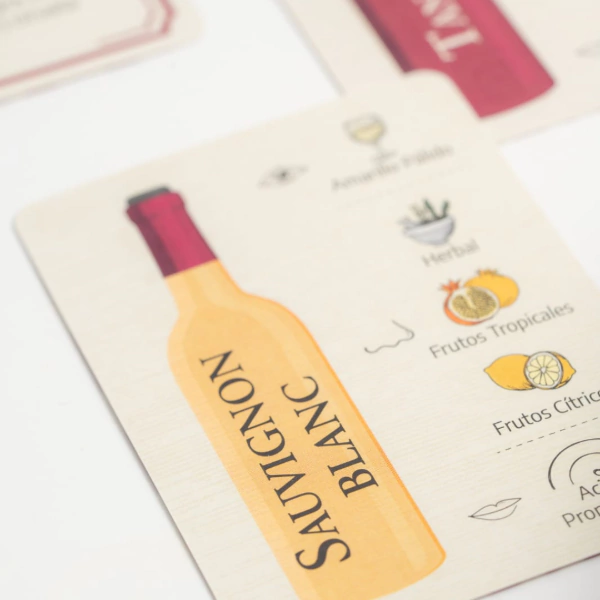El juego cuenta con 20 cartas de cepas tintas y 20 de cepas blancas que se producen en nuestro país. Es una herramienta ideal para aprender más sobre nuestra bebida nacional. Además, descubrirás 60 cartas de características de cada cepa, todas relacionadas con el arco sensorial que se estimula al probar una copa: la tonalidad de los colores y del brillo a la vista; el perfume a flores, a frutas, a especias o a frutos secos que se presentan en la nariz; los taninos, la acidez, la astringencia y el final en boca.