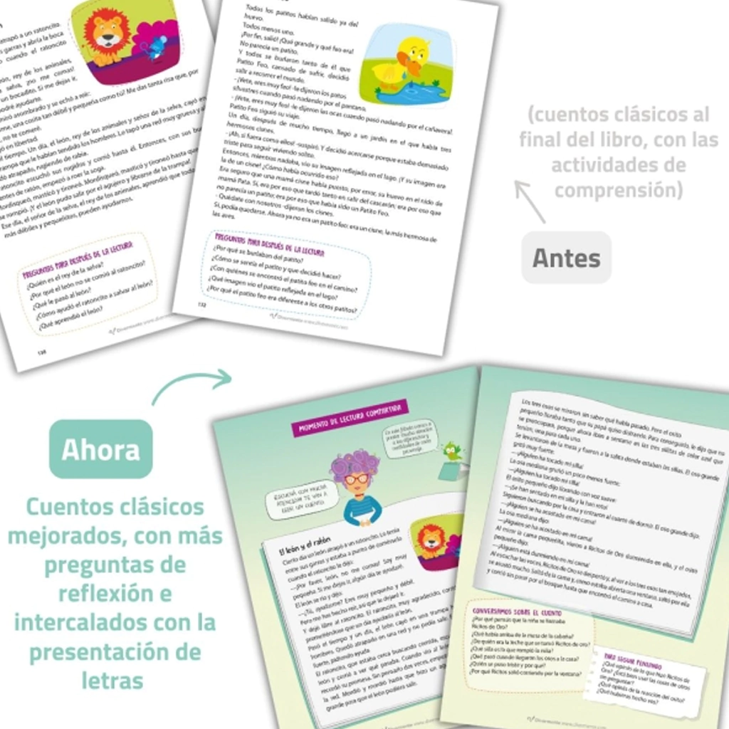 Ejercicios de comprensión lectora: Hacia el final del libro cuando el niño/a ya ha aprendido a leer, hay un apartado con ejercicios de comprensión lectora de creciente complejidad: Consignas simples, Verdadero falso, Idea principal, Adivinanzas y Trabalenguas, Textos informativos breves con preguntas de comprensión.