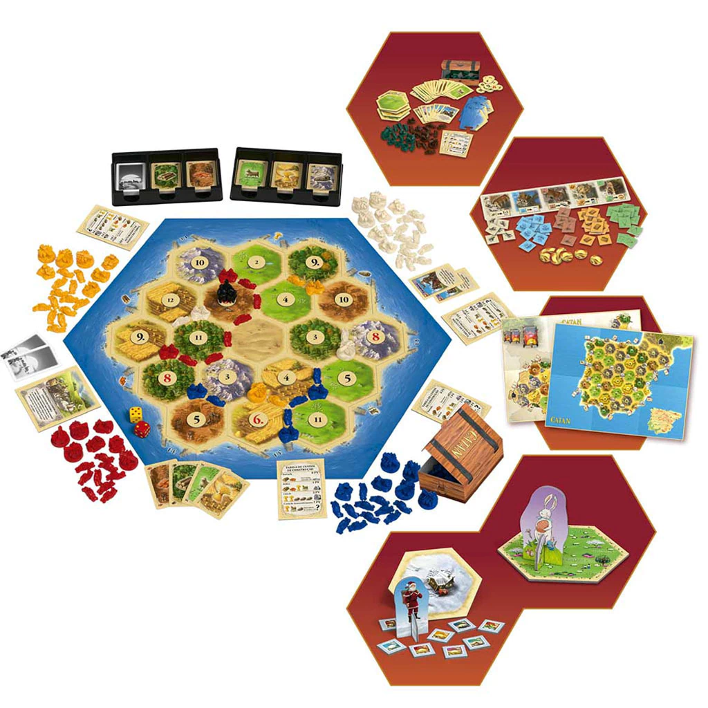 CATAN... es como has bautizado la isla que tú y tus compañeros han descubierto. Son sus primeros habitantes. Construyen poblados, después carreteras. Comercian con materias primas, y los poblados se convierten en ciudades. A veces hay arcilla en abundancia, en otras ocasiones es el mineral lo que abunda. El espacio en la isla se agota rápidamente , y empiezan las disputas por el terreno, las materias primas y el poder. Al final una cosa está clara: Catán sólo puede tener un único soberano. ¿Serás tú ese colono?