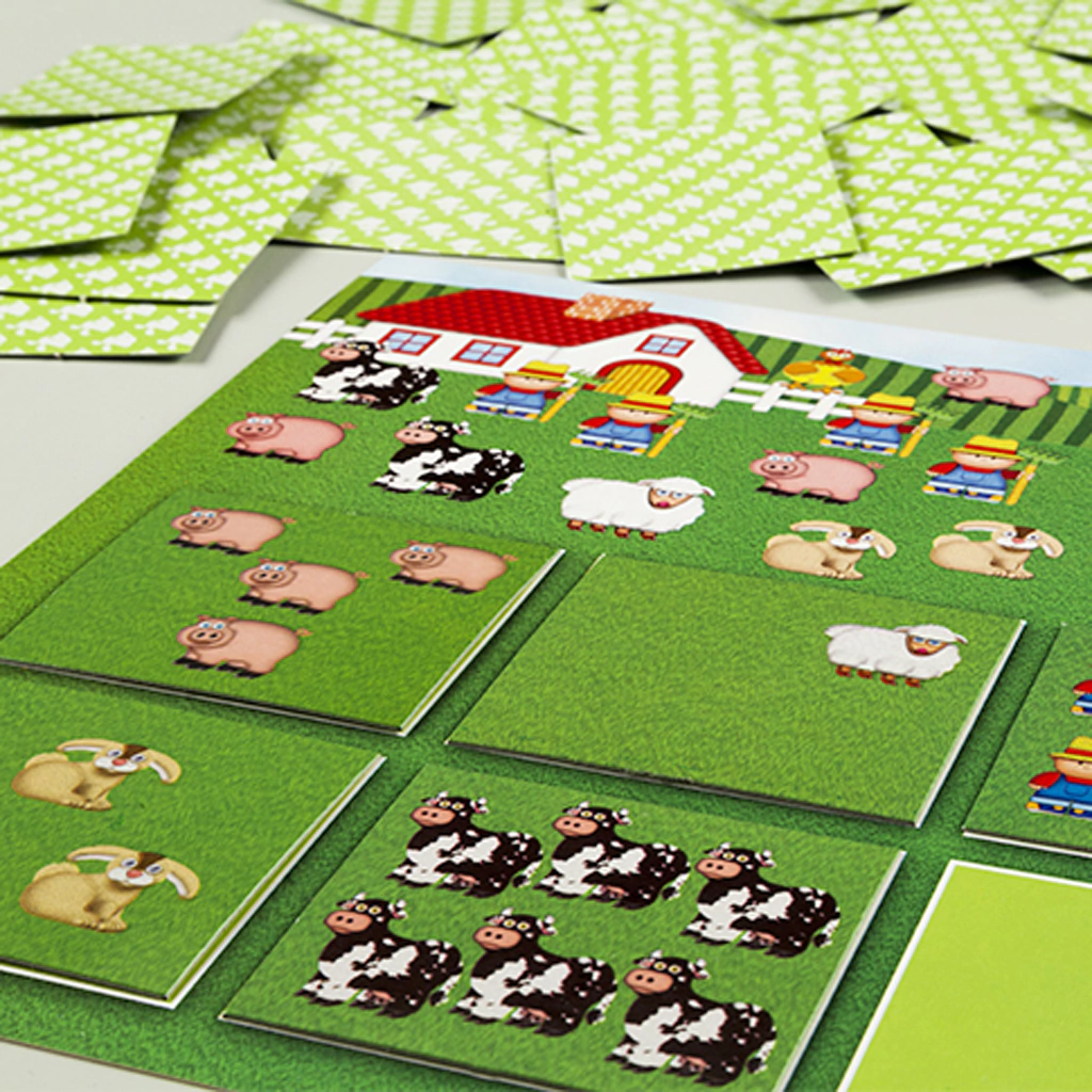Contando figuras de animales, los niños deberán reconocer las cartas con figuras idénticas a las que aparecen en el tablero de juego.