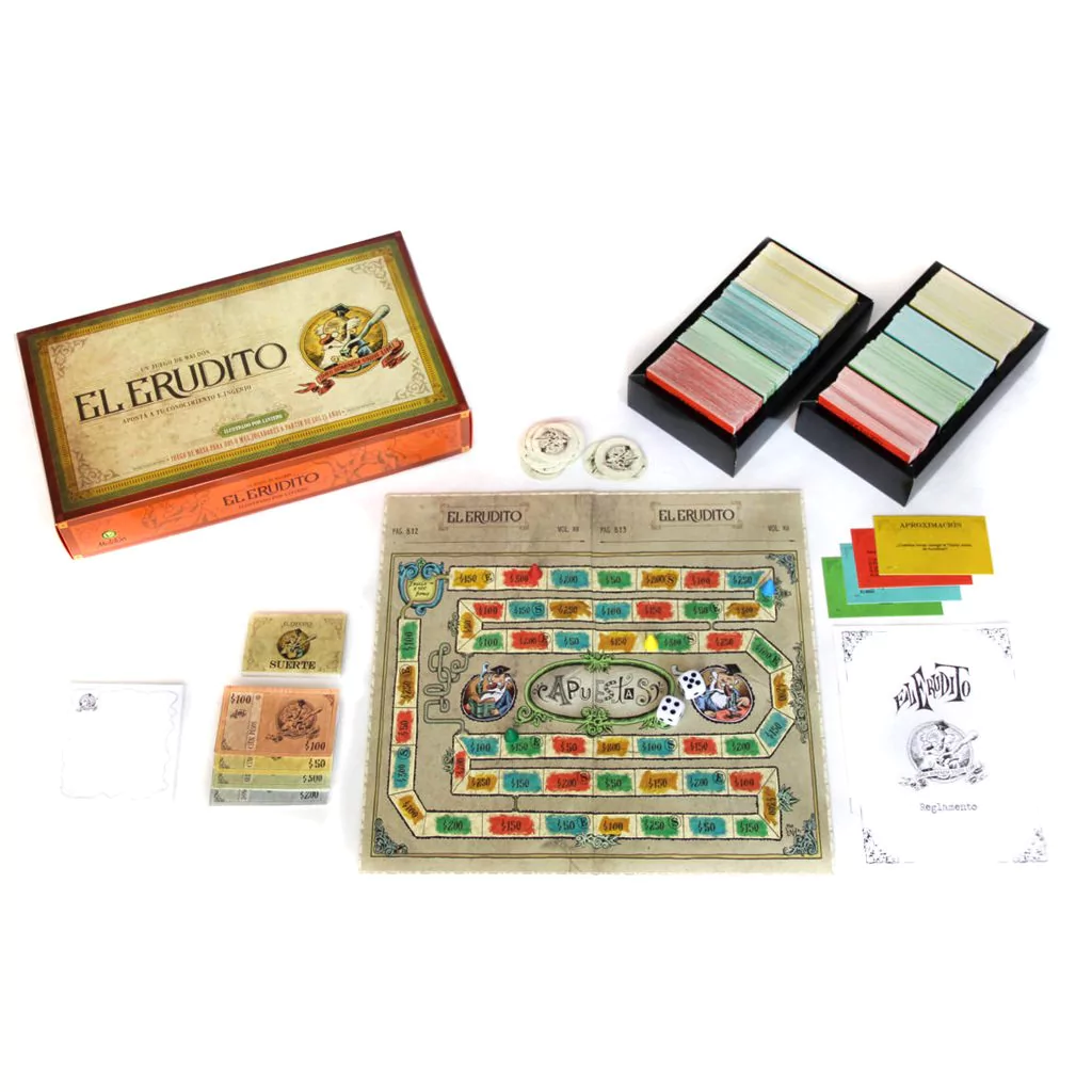 El Erudito es un juego de mesa de preguntas en donde no gana el que más sabe sino el que mejor razona. Es ideal para jugar en equipos. Un juego de mesa que combina ingenio, cultura general y apuestas en más de mil consignas. Según el casillero, se apostará un monto y se deberá responder una de las tarjetas.