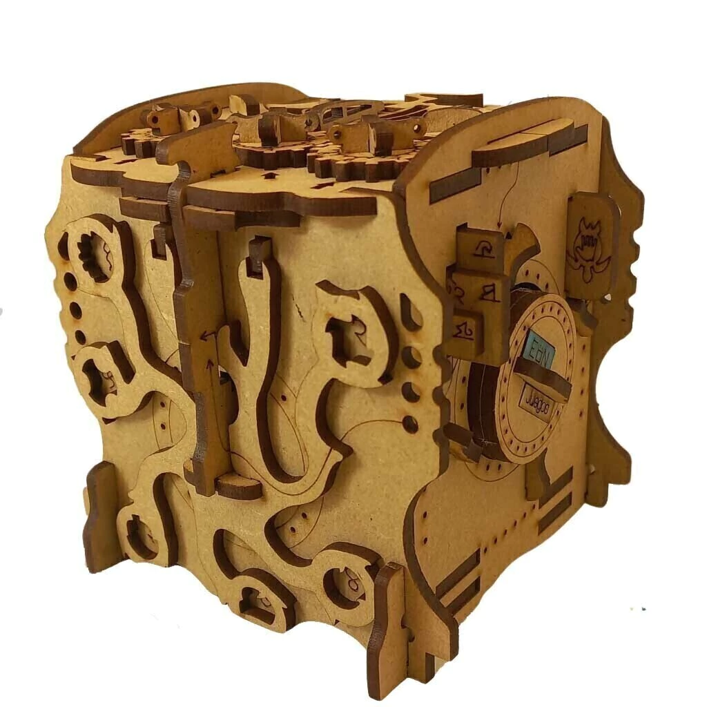 Calidad excepcional: Fabricada con MDF (fibra de madera) de alta calidad, cada componente de la Escapebox 3 ha sido cortado y grabado con láser, garantizando detalles únicos y un acabado impecable. Cada pieza es armada a mano, lo que la convierte en un producto verdaderamente especial.