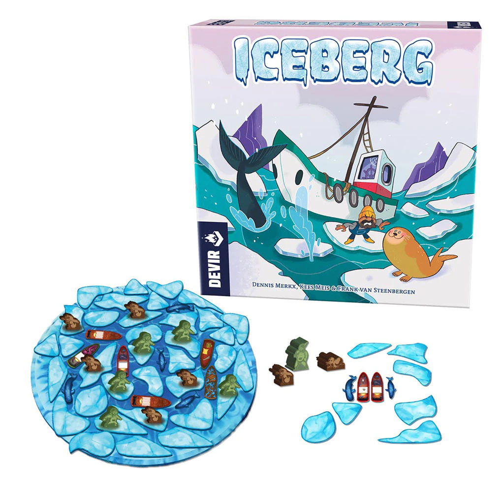 Iceberg es un divertido juego familiar para 2-6 jugadores, mayores de 6 años, que se juega en unos 15-30 minutos. El objetivo del juego es conseguir 5 puntos. Cada barco pesquero y cazador que empujes fuera del tablero te da un punto. En tu turno, puedes empujar tres témpanos de hielo al tablero. Pero ten cuidado, porque si empujas un animal fuera del tablero, ¡tu turno termina inmediatamente! El primer jugador que consiga una combinación de 5 barcos de pesca y cazadores termina y ¡gana la partida!