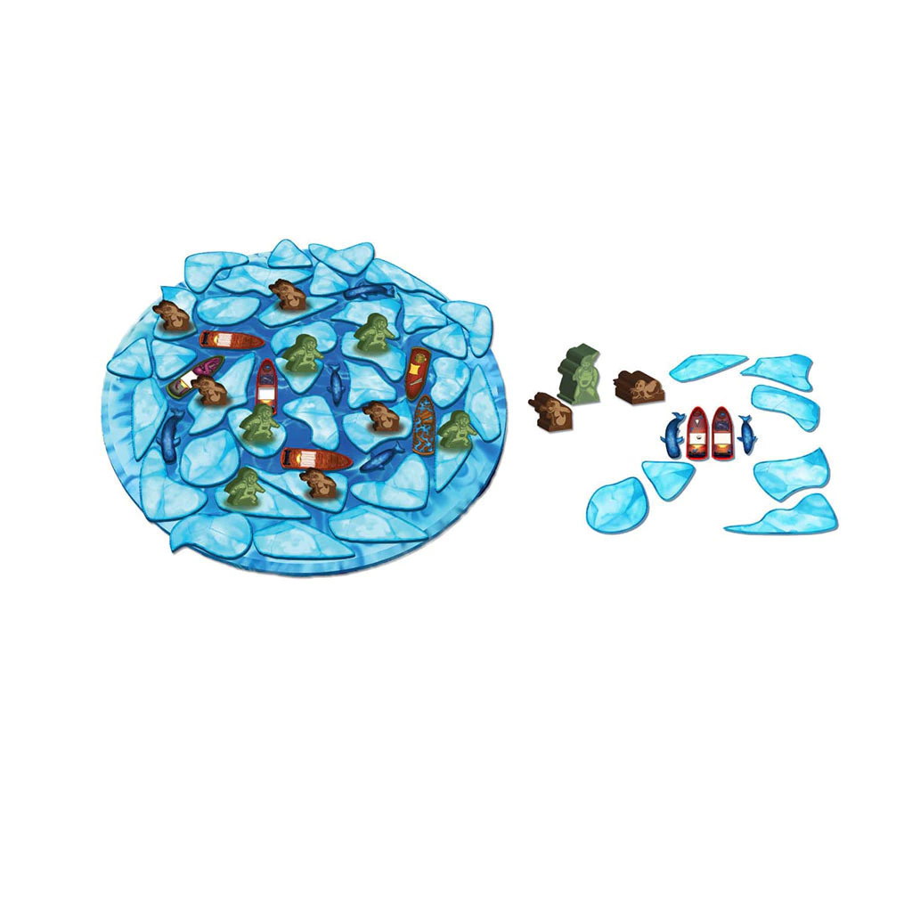 En Iceberg, de 2 a 6 jugadores intentarán salvar a las focas y ballenas de los barcos pesqueros y los cazadores. Empuja los témpanos de hielo sobre el tablero y procura que los barcos pesqueros y los cazadores caigan del otro lado del tablero. Ten cuidado de no empujar a las focas y ballenas fuera del tablero.