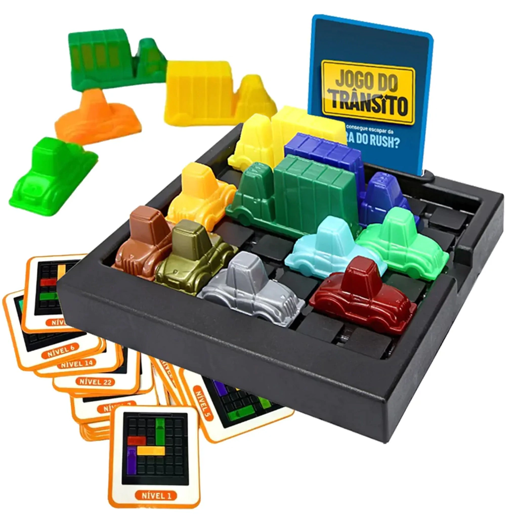 Luego, simplemente comience a deslizar los autos y camiones hacia adelante o hacia atrás en sus respectivos carriles (no se permiten giros) para resolver el desafío propuesto en la carta y escapar del atasco por la salida lateral.