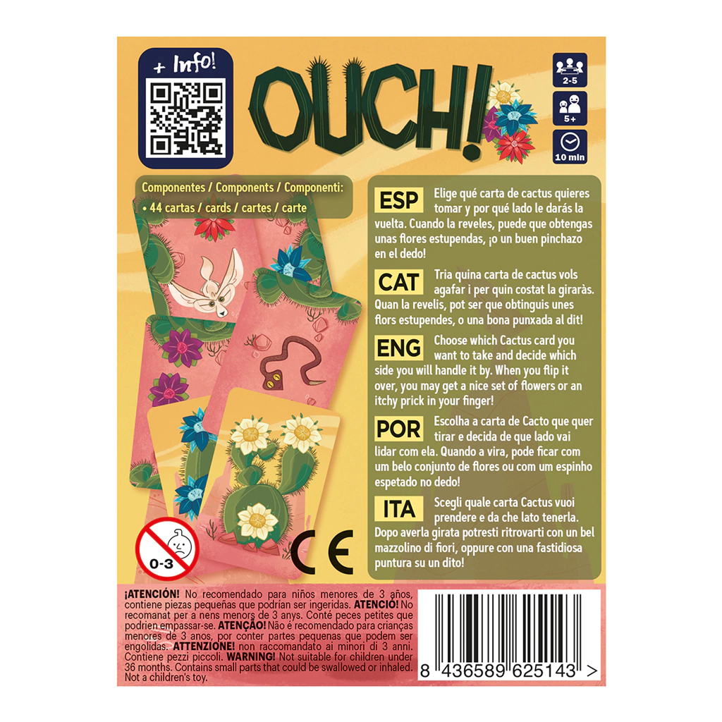Ouch! Es un juego de cartas creado por Romain Caterdjian y Théo Rivière e ilustrado por Fran Collado. Recomendado a partir de cinco años, pueden participar de 2 a 5 jugadores en partidas de unos diez minutos de duración. Los jugadores competirán por obtener el mayor número y más variedad de flores de cactus, evitando los pinchos afilados.