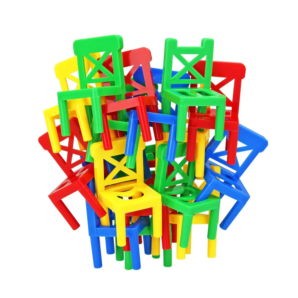 Cada jugador elige un color de silla y se juega una a la vez. El objetivo es apilar una silla sobre otra, pero siempre con cuidado de equilibrarlas. Si dejás caer alguna, perdés el juego.