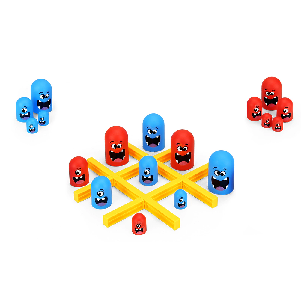 El juego comienza con 2 jugadores (cada uno tiene 9 piezas: grandes, medianas y pequeñas) que intentan colocar en una línea horizontal, vertical o diagonal; las piezas más grandes pueden colocarse en una nueva posición o encima de una pieza más pequeña. Para lograrlo, podés cubrir la pieza de tu oponente si es más pequeña que la tuya. Así, la competencia continúa con cada jugador tratando de evitar que el otro forme una "triple línea", ya sea estratégicamente o cubriendo la pieza de su oponente.